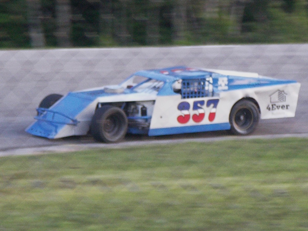 Milton Grubaugh drives his #357 Modified around Northern Michigan Speedway on 7-13-2024 (DeLayna Dubie Photo)