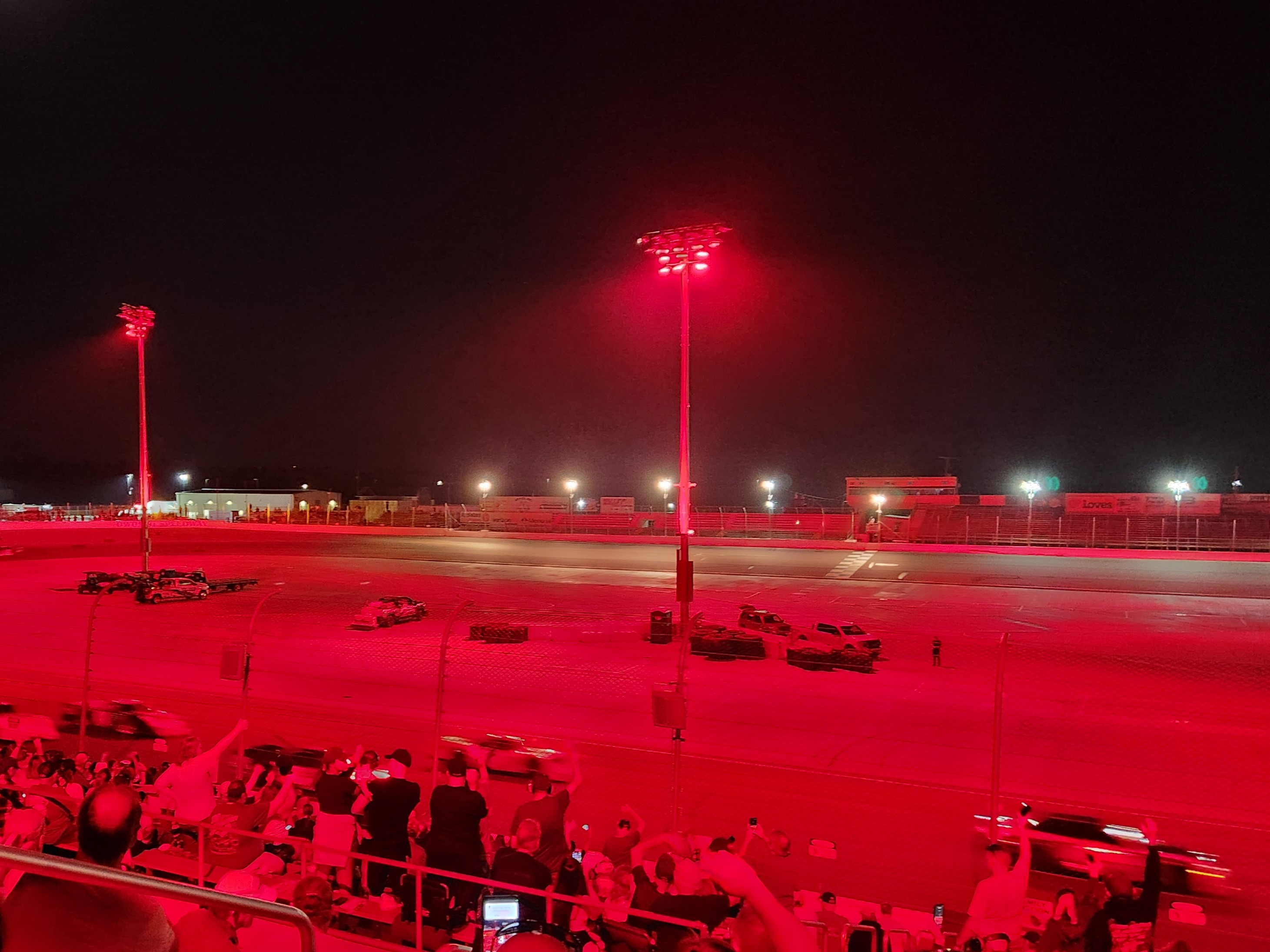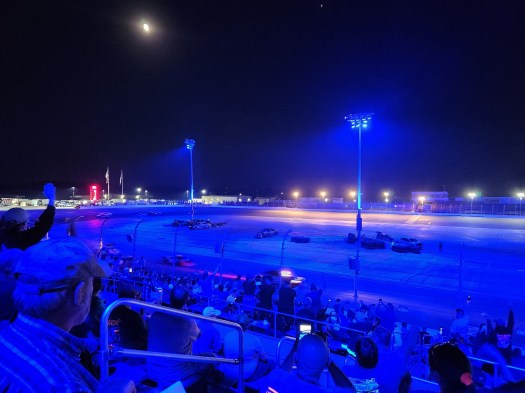 This track is well lit and I love the multi-colored lights that they flash with the music before the features. It is as good as a good fireworks show (maybe even better because fireworks have the noise that I don’t care for).